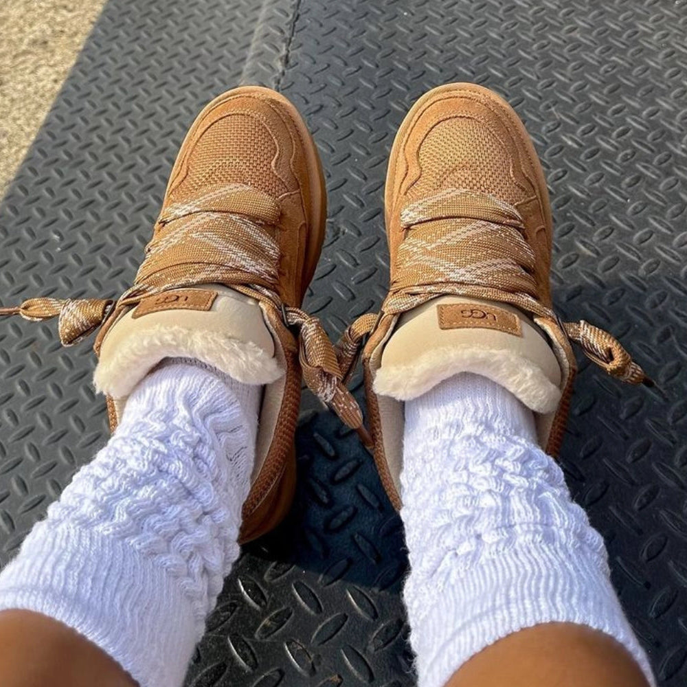 Blødt ruskind, luftig mesh og markante snørebånd kombineres for et look, der udstråler ubesværet selvtillid. Hvert skridt føles som at gå på skyer — let, glidende og næsten uvirkeligt. Jeans, nederdele, joggingbukser — uanset din stil får disse sneakers ethvert outfit til at se bedre ud uden anstrengelse.